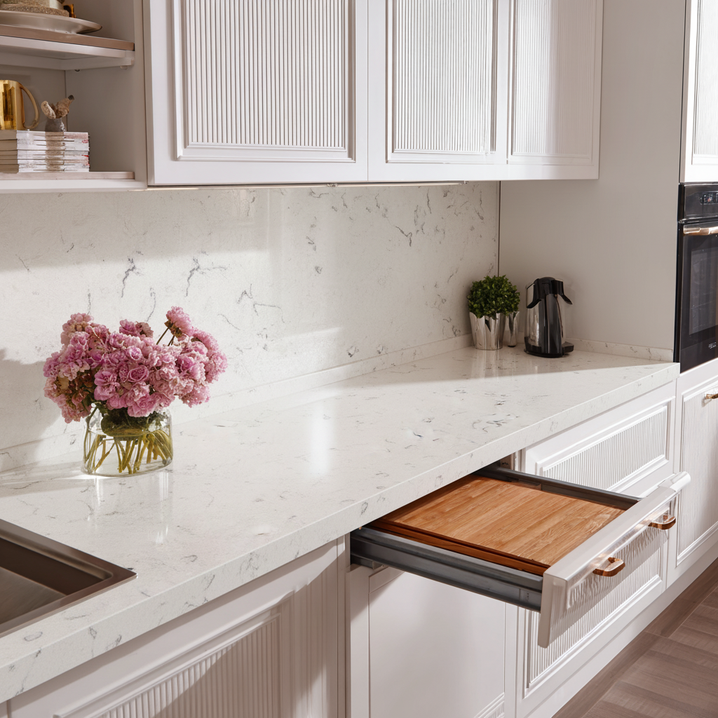 Alaska White Quartz - Kitchen Countertop, 4ft x 2ft, 0.8in