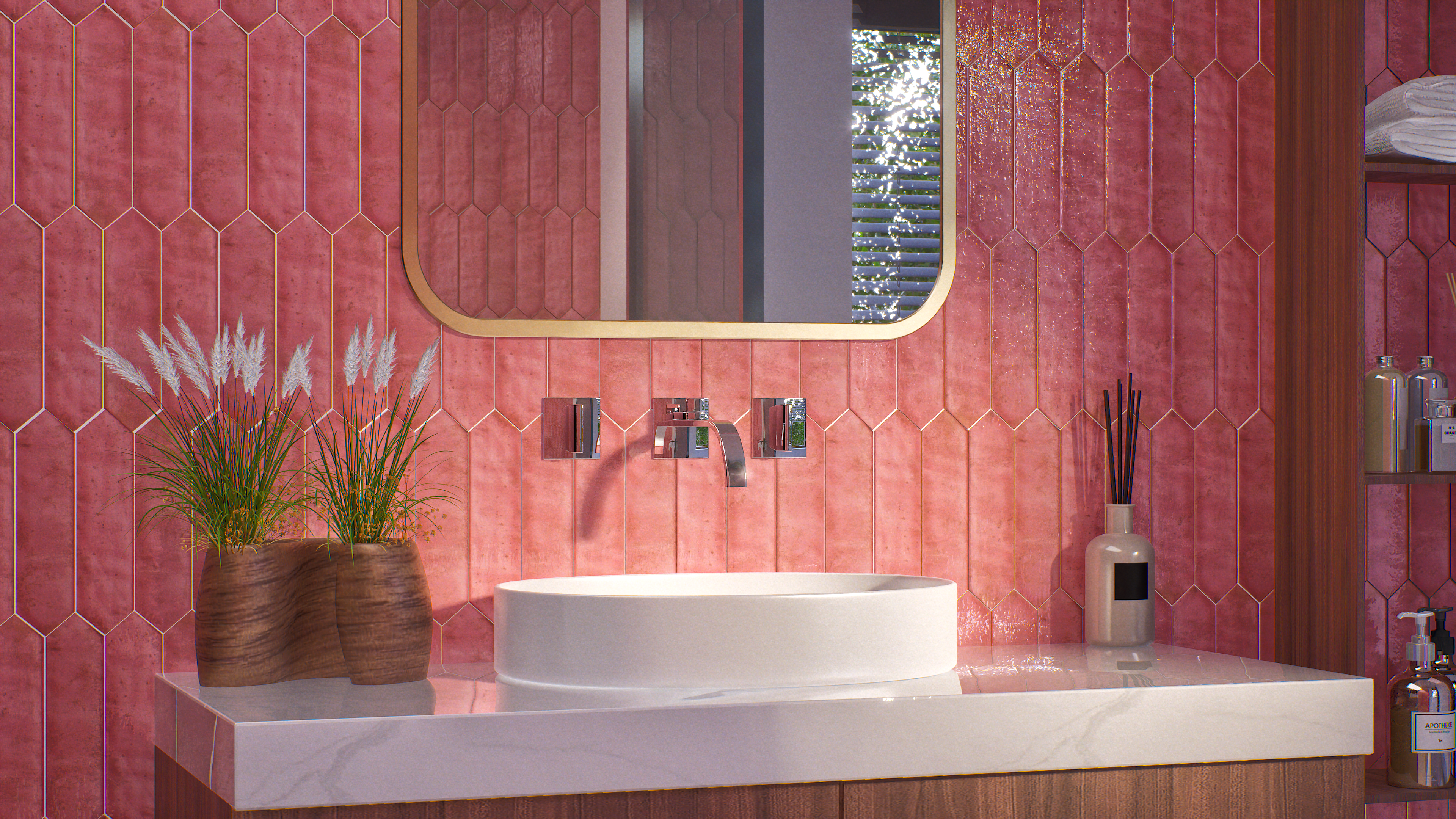 Cavalier Picket Rose Glow Ceramic Wall Tile - Glossy Finish, 1ft x 0.25ft, 0.39in