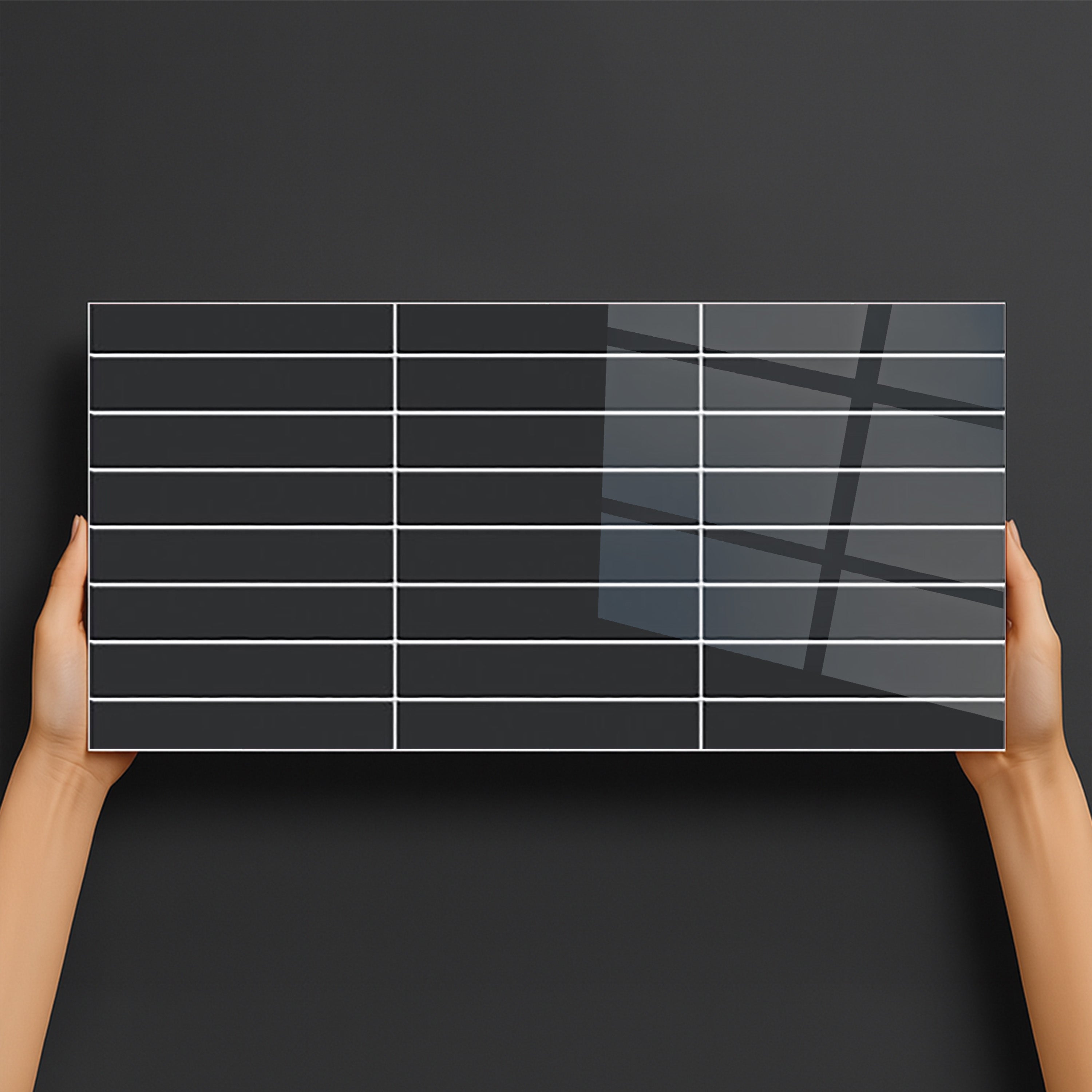Subway Black Ceramic Glossy Wall Tile - 2 ft x 1 ft, 8 mm
